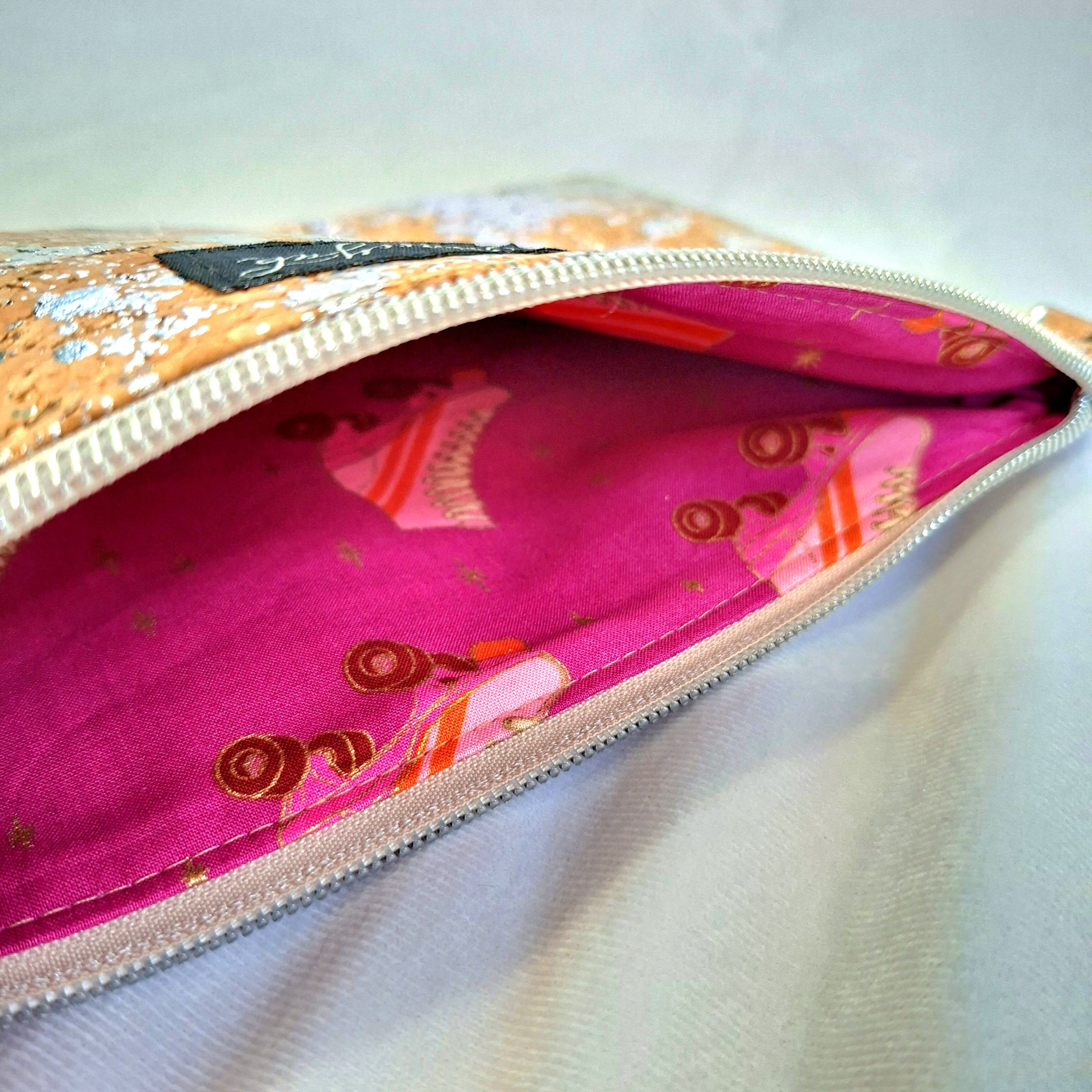 Handmade by me in my studio at the end of my garden. I love finding different funky linings for these pouches. Gives me a little glow when I see customer’s eyes light up when they look inside. They were not expecting bright butterflies.