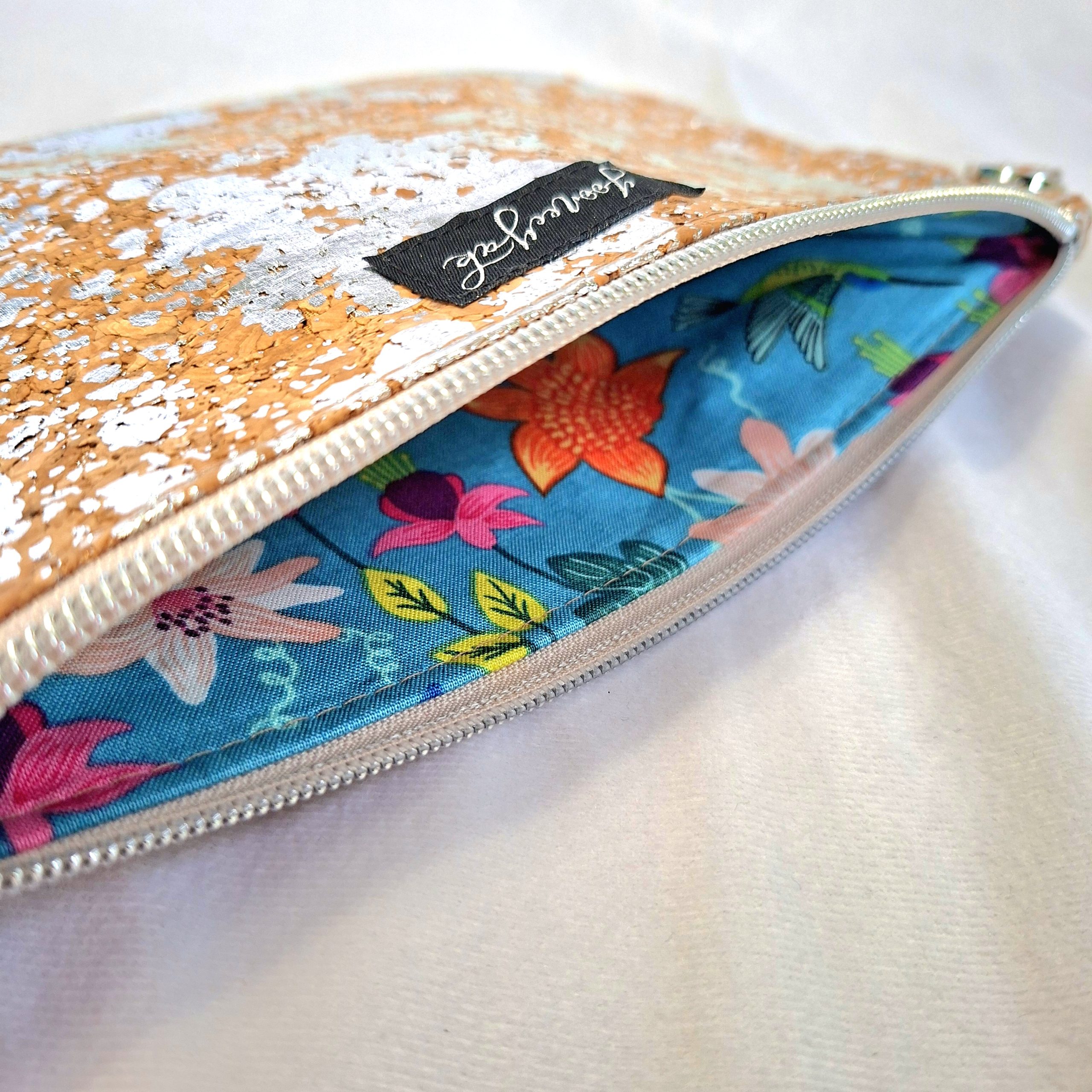 The Heidi Clutch in silver cork is versatile enough to use as a bag tidy, make up bag for extra pizazz in your morning routine or even a snazzy pencil case.